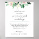 Welcome your friends and family to your wedding with this classic, elegant, pretty watercolor floral unplugged wedding sign poster in pink, white, and green color palette with white background. Sign is customizable, including the background color.