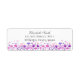 Watercolor flowers in shades of purple, blue and pink with peach accents. Set on a white background. Flowers in shades of purple, blue and pink with peach accents. Set on a white background. Personalize with your name and address in dark gray mixed font.