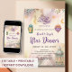 A soft and dreamy Iftar invitation featuring hand-painted watercolor lanterns, crescent moons, and stars. Set against a beautiful pastel alcohol ink background with delicate floral touches at the top. Ideal for a warm family Ramadan gathering or Eid celebration.