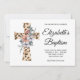 Watercolor Floral Leopard Cross Grey Baptism Invitation