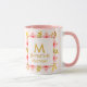 Start your day with a sip of elegance using our Personalized Watercolor Floral Monogram Mug. This charming ceramic cup features a delicate wreath of soft pink and purple wildflowers that perfectly frame a sophisticated gold-style initial and custom name. The clean white exterior is beautifully contrasted by a pastel pink handle and interior, adding a pop of color to every sip.