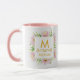 Personalized Watercolor Floral Monogram Mug – Custom Gold Initial & Name White Ceramic Coffee Cup with Pink Interior – Elegant Gift for Her, Mother's Day, Bridesmaids.