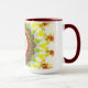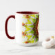 This brightly-colored mug features a kaleidoscopic fractal image resembling an autumnal-hued watercolor flower.