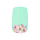Peach, plum and raspberry pink flowers sit on a neo mint background on these Minx nails.
