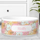 Watercolor Floral Pattern Name Pet Dog Bowl