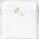 The sticker is made on wonderful paper and had no problem sticking to the bag that I purchased to put it on. I wanted to find a design that would be cute for the bride and groom and this one fit the bill as it has cute "bees" buzzing around and the wedding was taking place in a town called "Bee Cave". The packaging was great and protected the stickers. The website is easy to navigate and there are so many color choices. I had no problem finding a color that the bride was using on everything else selected. The design was adorable and there were many to choose from. You can make the figure as larger or smaller and you can place the photo and writting whereever you want to in the sticker. The printing is fabulous..better than expected.