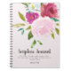 A personalized Christian Scripture journal featuring a large bright floral bouquet in pink and green, the phrase "Scripture Journal " in dark grey hand lettered font, with the Bible verse “The grass withers, the flower fades, But the word of our God stands forever.”