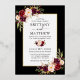 Modern Elegant Watercolor Burgundy Floral Wedding Invitation includes burgundy roses, pink roses, red roses and botanical greenery. Gold Foil Frame. Black Background. Photo Back.