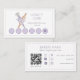 Simple, clean, and minimal style bakery loyalty card design featuring a watercolor baking tool ( rolling pin and piping bag) A stylish light purple floral background creates a modern look. Personalize with the card name and discount details. The reverse side is designed in a clean and minimal style with the company name and business tag line and personalized contact information with Qr code. A simple, chic, and stylish business card for the home baker, bakery, pastry shop, cake entrepreneur baker, chef, caterer, and much more.