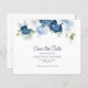 Elegant floral watercolor dusty blue, white, and navy floral bouquet wedding save the date with QR code card. The card features a script "Save the Date", that can be changed to a font type of your choice that are available here when you click the "Personalize" button. Add your wedding website and QR Code on the reverse side so your guests can keep up do date with your plans