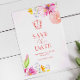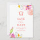 Announce your engagement with these floral monogram wedding save the date invitations. They feature a mix of classic and script typography in peach over a a crisp white background. A boarder of unique watercolor floral art frames you details in shades of pinks and peach. Use the template fields to personalize with your name and wedding date. The back features a custom QR code. Simply add in your wedding website to the templet field and it will update. Choose from a variety of quality card stocks. Mix and match this stationery with many of my designs to create your customized wedding theme. A classy and trendy design for sustainable weddings and engagement announcements. To see the matching wedding stationery suite visit https://www.zazzle.com/collections/fuchsia_pink_and_orange_wedding_invitation_suite-119676904535625038
