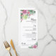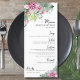 Elegant Destination Floral Palm Tropical Wedding Menu. Use this menu for a wedding reception, engagement party, rehearsal dinner, or even any other special occasion. With pink and green botanical accents contrasted by black and white lettering. A tropical design that embraces the tranquil beauty of nature mixed with a playful edge that is sure to help you have fun. A blend of calming green tropical leaves, including banana leaves, palms, monstera leaves, and pink princessa plants, alongside soothing purple-pink orchid flowers and protea bloom, intertwined with various other foliage. Enhanced by a modern handwritten or script typography font, this enchanting print radiates charm and sophistication. This versatile design brings a sense of tropical paradise to any setting or special occasion, making it perfect for a destination wedding, or just when you want to add a tropical flare.