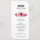 A menu card features a floral design in shades of pink at the top is perfect for a wedding reception, wedding rehearsal dinner, anniversary party or any special event with a sit down dinner. MATCHING items in our store.