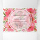 Elegant garden flowers in shades of pink accent these tri-fold wedding invitations with your details in chic lettering in sections on the front and back. Along with your wedding information, there is room for details, a photo on the back and a detachable RSVP card for guests to complete and return. MATCHING items in our store.