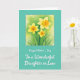 This card features a softly painted botanical scene that feels like a gentle note between close friends ❤️. Near the top, three trumpet-shaped blossoms glow in lemon yellow with warm orange centers, leaning toward one another as if sharing a quiet moment. Thin green leaves and stems surround them, adding a light, airy garden setting. The flowers sit inside a loose rectangular window with a mottled wash of spring greens and an uneven edge that looks intentionally organic. Behind everything, a calm teal background makes the yellows and greens stand out without feeling loud. Below the illustration, a short message appears in flowing white lettering, centered and spaced comfortably under the frame 🌼. The white text contrasts clearly against the teal field, with smooth curves that echo the rounded flower forms above. The green-framed vignette has a softly irregular border, and the blossoms show orange coronas nestled inside their yellow petals.