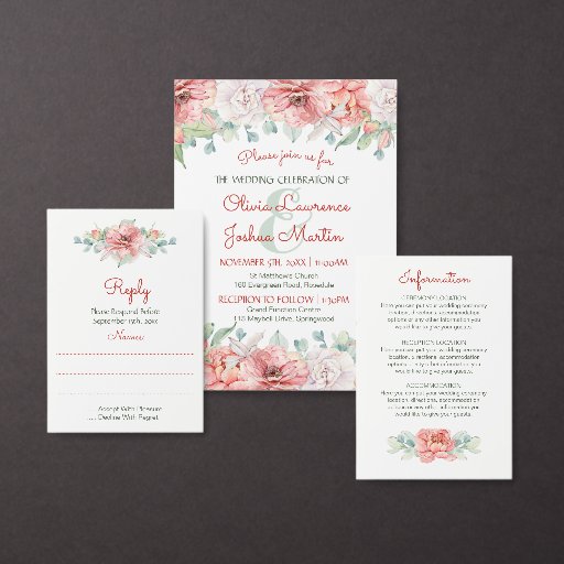 These wedding information cards feature a watercolor flower design. Use these cards to give your wedding guests information about directions, accommodation or any other important information they may need to know about your wedding. The back of the cards have a matching flower pattern. You can change the font style, color and background color by clicking the "Customize" button. Rounded corners have been chosen for this design but you can choose other square corners if you prefer. There is also a good range of paper options to choose from. These watercolor flower wedding information cards are part of a collection which includes a full range of matching wedding stationery such as wedding invitations, reply cards, address labels, stickers, postage stamps, envelopes, favor boxes, wishing well cards, programs, menus and much more. Visit the collection page in our store to see the full range.