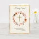A beautiful watercolor flower wreath encircles a gold cross with a Bible verse underneath. The 23rd Psalm is on the inside left side. Customize with all of your personal details and preferences, including text, font, font size / color / placement, paper and personal message. Please don't hesitate to contact us with any questions you may have.
