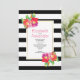 Watercolor flowers black white stripes wedding invitation