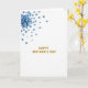 This card features a gentle sweep of small blue, daisy-like flowers drifting from the upper left across a bright white background, like a soft bouquet being carried on a breeze 🌼. Each bloom has a sunny yellow center, and the cluster starts dense near the corner before thinning into scattered petals that guide your eye diagonally. The airy white space keeps everything light and open, giving the flowers room to feel like a quiet gesture of care ❤️. Centered below the floral trail, the words “HAPPY MOTHER’S DAY” sit in a golden-bronze tone that looks slightly metallic against the pale backdrop. The lettering is placed with plenty of breathing room around it, so the message feels calm and steady rather than crowded. Soft, even lighting smooths out shadows and lets the blue petals and warm gold text feel gently connected, like a tender exchange between loved ones. In the upper left, the blue blossoms are tightly grouped, then gradually scatter into smaller clusters across the white space.