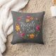 Watercolor Flowers Heart Wreath | chalkboard grey Throw Pillow