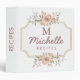 Watercolor flowers Monogram Script Name Recipe 3 Ring Binder