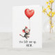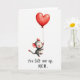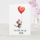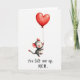This Mother's Day card shows a small, round-eared, rodent-like character with rosy cheeks and wide eyes, floating upward while clutching the string of an oversized red heart-shaped balloon ❤️. The little figure is shaded in soft gray tones, and its gentle smile and upward gaze suggest a sweet, trusting bond, like it’s being carried by someone’s love. Lots of open white space surrounds the pair, making the balloon feel even larger and more protective above the character. Subtle brushy texture appears in the red heart, with slight color bleed along the edges that adds a tender, painted look. Light pink touches warm the inner ears and the tip of the tail, echoing the affectionate mood without needing extra clutter. Near the bottom, the message “You lift me up. MOM.” is written in dark lettering, centered low on the page beneath the floating character and balloon 🌼. The balloon sits high and slightly to one side, with the thin string angling down to the character’s tiny paws against the white background.