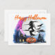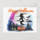 Watercolor Flying Witch Halloween Postcard