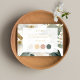 This gorgeous wedding dress code attire enclosure card features a watercolor floral foliage illustration, a contemporary font in imitation gold, and 4 color strip in popular pastel wedding hues. A joyful display of floral blooms at the front of the card adds a youthful elegance luxe style to your wedding stationary. The back includes couple initials against a white background. Tip: If changing the colors using the Editing tool,remember to change the filler as well as the border color for each circle.