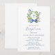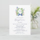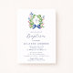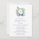 Watercolor Foliage Wreath Blue Bow Baptism Invitation