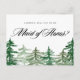 Watercolor Forest Will You Be My Maid of Honor Invitation Postcard