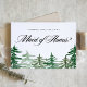 Will you be my maid of honor? Ask family and friends to be part of your bridal party with this woodland proposal card. It features watercolor illustration of green trees with modern typography. Personalize by adding a message. This rustic forest maid of honor proposal card is perfect for fall and winter weddings. Matching items are available.