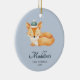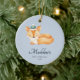 Watercolor Fox Blue Baby First Christmas Ceramic Ornament