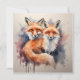Immerse yourself in the artistic finesse that captures the connection between these two beautiful creatures. The muted watercolor tones add a soft and ethereal quality, enhancing the charm of the foxes as they meet the viewer's gaze with a sense of curiosity and allure.