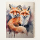 Immerse yourself in the artistic finesse that captures the connection between these two beautiful creatures. The muted watercolor tones add a soft and ethereal quality, enhancing the charm of the foxes as they meet the viewer's gaze with a sense of curiosity and allure.