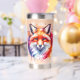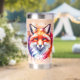 Fox watercolor illustration tumbler with an abstract splatter in red, purple, orange and blue.