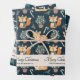 Watercolor Fox Pattern Merry Christmas Monogram Wrapping Paper Sheets