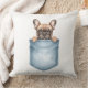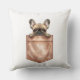 Add a touch of puppy love to your sofa or bed. This throw pillow features a trompe-l'oeil design of a fabric pocket with a French Bulldog puppy inside. Isolated on a clean white background, it matches any modern farmhouse or cozy decor.