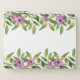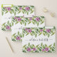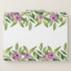 Watercolor garland with purple flowers with your name in handwritten script style calligraphy floral file set. The upper part and bottom is covered with a garland of greenery with purple flowers.
