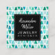 Give your business a unique professional look with this jewelry designer business card. The design features a beautiful blue and green watercolor gemstone look pattern background with a black frame and white typography. The name in a handwritten-style script font adds a trendy signature look, while the "jewelry designer" title in a sans serif font looks clean and professional.