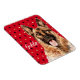 Stylish magnet features watercolor portrait style illustration of German Shepherd dog on red black and gold diamond harlequin background. Personalize with name or special message