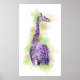 A bright bold and colorful rendering of a giraffe in purples and yellows.