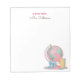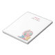 A cute notepad design for teachers features "a note from" and your name in the green and red script lettering, incorporated by a single watercolor pink globe illustration.