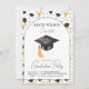 Celebrate the Class of 2026 with this festive "Gold and Black Balloon" graduation party invitation. Featuring a whimsical watercolor pattern of graduation caps, stars, and shimmering balloons surrounding a clean white arch. This elegant yet playful design is perfect for high school or college graduates. Easily personalize with your name and event details to invite friends to a brilliant milestone celebration.