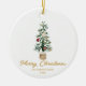 If you are looking for a simple minimalist beautiful and easy editable Christmas ornament. This one is perfect for you. And as you see the design features a watercolor hand made and drawn Christmas tree with ornaments decoration in red and gold . With gold typography of MERRY CHRISTMAS. And your family name and year under it.