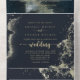 This watercolor gold splash wedding all in one invitation is perfect for a rustic wedding. The design features hand-painted gold splash in a dark blue background.