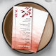 Elevate your wedding menu card with a stunning watercolor gradient background and a touch of Japandi style. This design effortlessly combines simplicity and elegance, featuring a vertical line on the left side that extends towards the upper part of the card, creating a visually appealing effect. The word "MENU" is cleverly incorporated into the design, adding a modern twist. The watercolor gradient background, adorned with a beautifully illustrated branch and leaves in a simple yet captivating style, showcases tones of terracotta and brown red, adding warmth and sophistication to your wedding stationery. The back of the card also boasts the same mesmerizing watercolor gradient background, ensuring a cohesive and harmonious look.