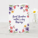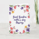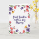 Designed with a white background and a gentle floral frame, this card centers the phrase “Great Grandma mother’s day blessings” in deep indigo lettering that curves smoothly across the middle. The words sit open and uncluttered, giving them room to breathe like a quiet note passed with care ❤️. Around the edges, soft watercolor stems rise from the corners and lean inward, as if the flowers are reaching toward the message and toward each other. Petals in tender pink with yellow centers mingle with light purples and warm orange blooms, creating a cozy, affectionate garden feel 🌼. Small buds appear beside fuller blossoms, adding a sweet sense of closeness, like different generations gathered side by side. The green leaves vary in shape and shade, with light washes and softened edges that keep the border airy rather than heavy. The indigo text remains the clear focal point, while the floral border forms a loose rectangle that frames it without touching the letters. In the corners, the stems curl slightly and taper into fine points, with a few tiny buds angled diagonally toward the center.