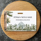 Add nature accent into your business branding with our Watercolor Green Forest Personalized Badge. Featuring watercolor illustration of woodland and mountain. Personalize it with your details and impress your client and customer with a touch of woodland charm.