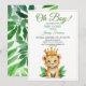 Watercolor Green & Gold Cute Lion Baby Shower Invitation