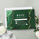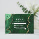 Modern Elegant Watercolor Emerald Green and Gold Marble Agate Geode Wedding RSVP Card